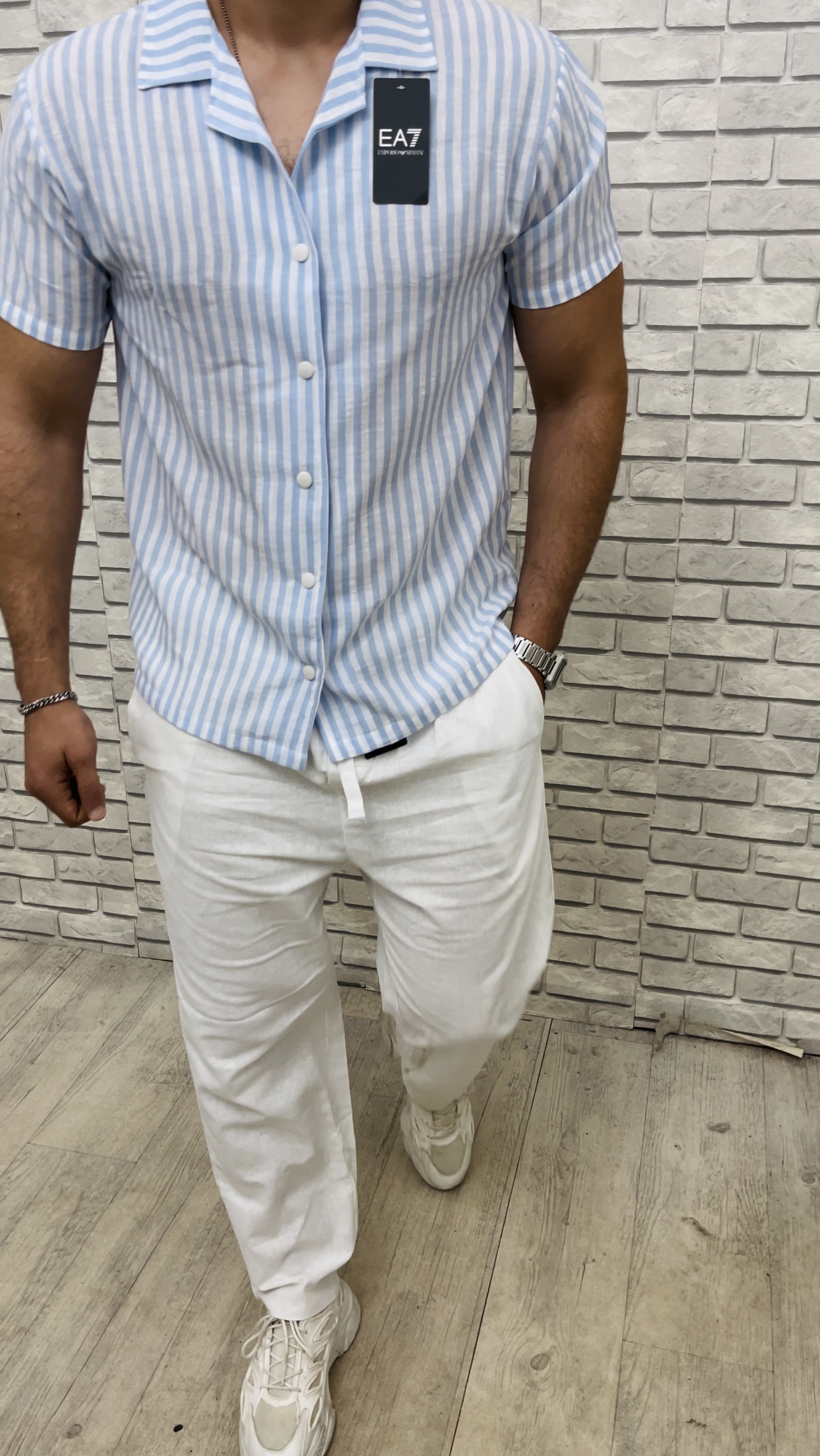 ensemble EA en lin a rayures x15,700 د.ج